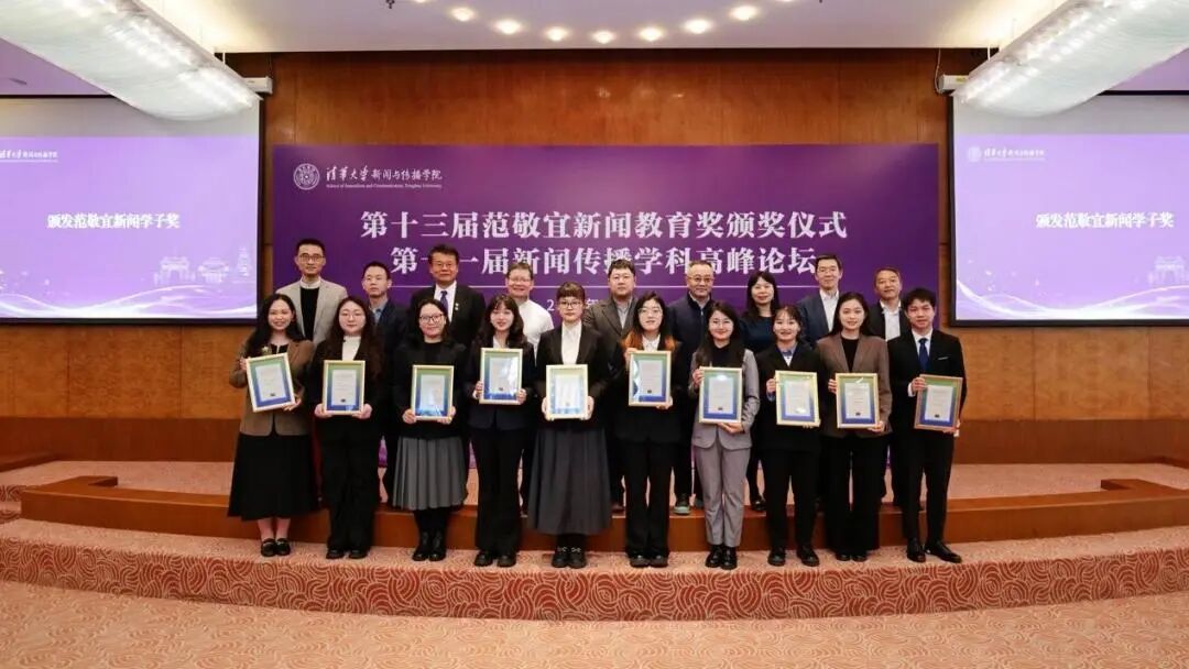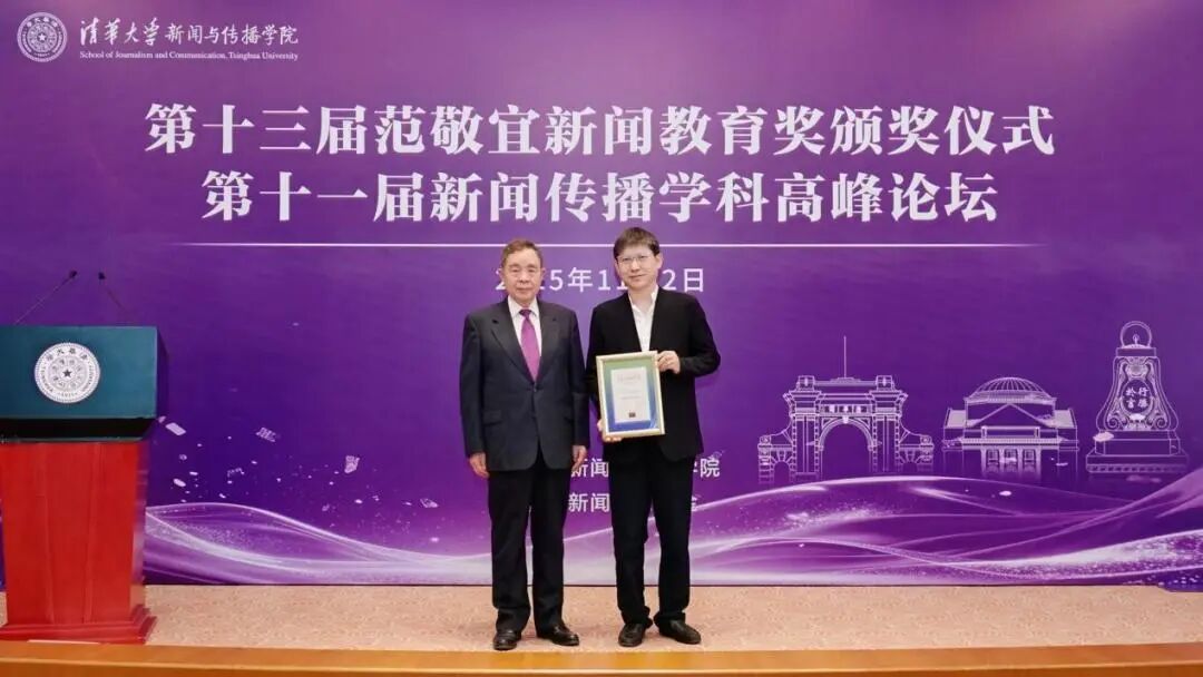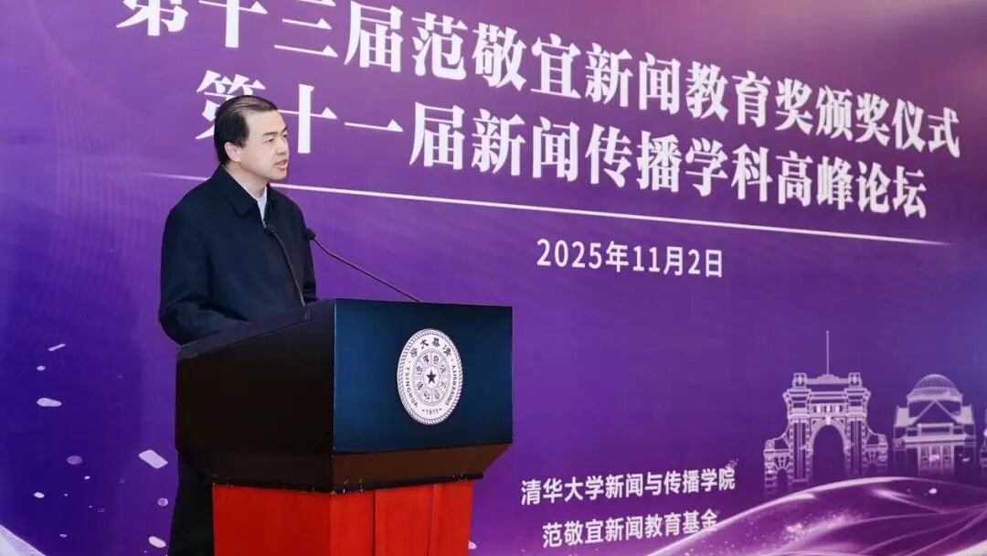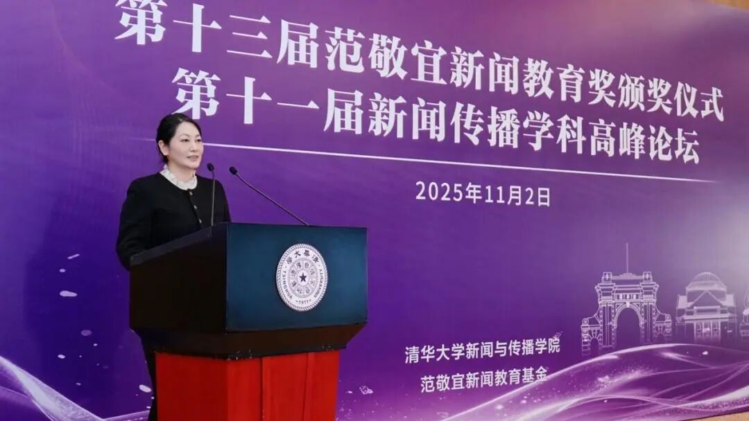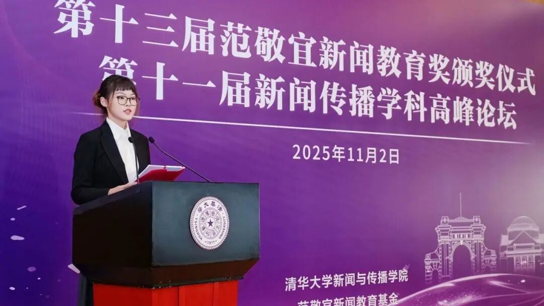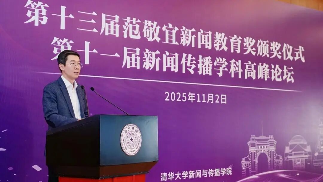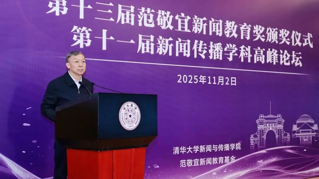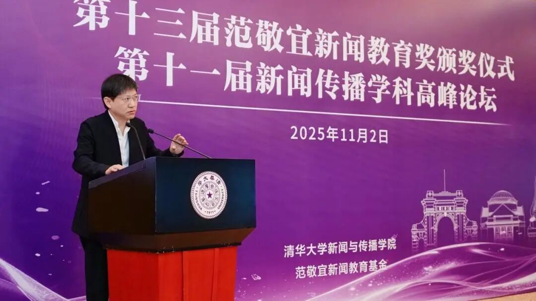 周庆安代表范敬宜新闻教育奖评选组委会汇报评选情况。范敬宜新闻奖包括学子奖、良师奖与良友奖三项。2025年10月15日,清华大学华体会登录口