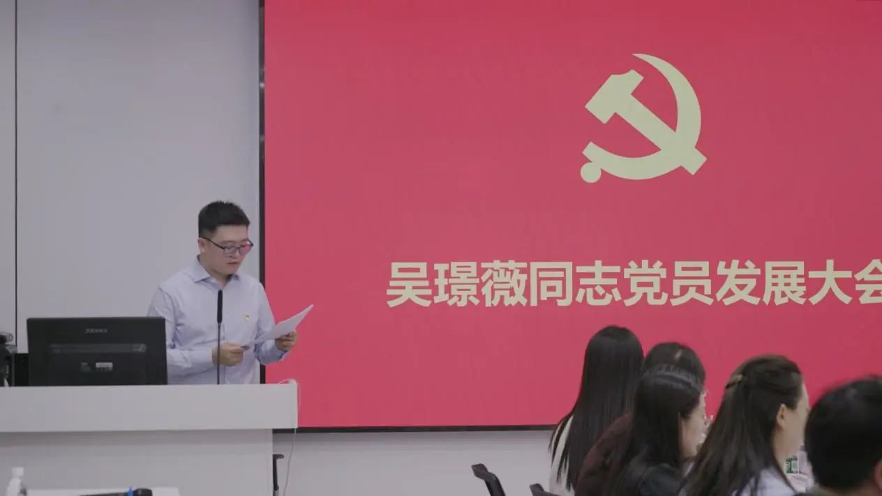 教授胡钰认为,她的入党选择是真诚且坚定的,长期在教学与研究中践行马克思主义立场,体现出高度的政治觉悟与实践能力。副院长张铮则指出,吴璟薇同志在发展过程中展现了对自我的严格要求,也希望她今后继续以党员标准严于律己,在思想和业务上持续进步。