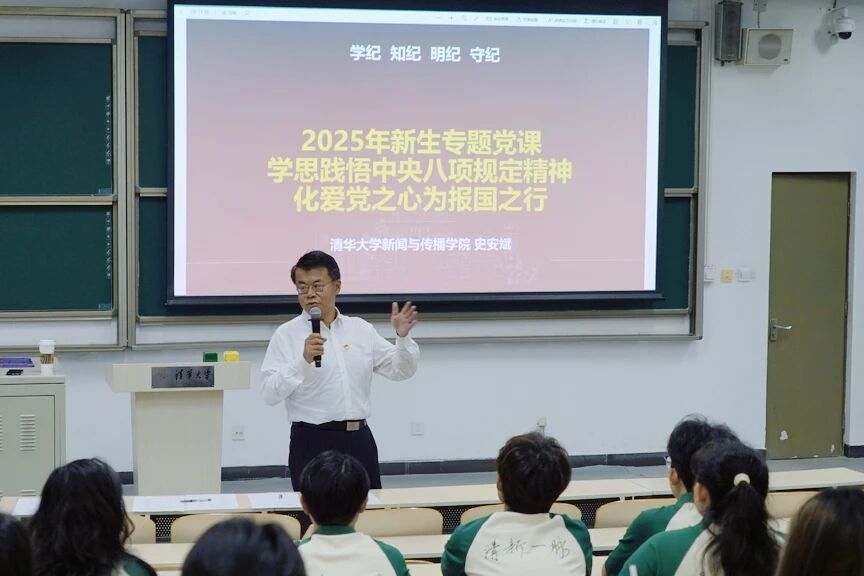 最后,史老师重申了清华大学光荣的党建传统及其一以贯之的入党标准。他告诉同学们,入党并非出于功利目的,而是经过严格考验的思想认同和价值选择。他鼓励党员同学以党员标准严格要求自己,非党员同学积极提升思想觉悟,共同向着“坚守清华初心,赓续清新一脉”的精神高度努力成长,在实现个人理想的同时服务国家战略需求,真正成为有理想、敢担当、能吃苦、肯奋斗的时代新人。